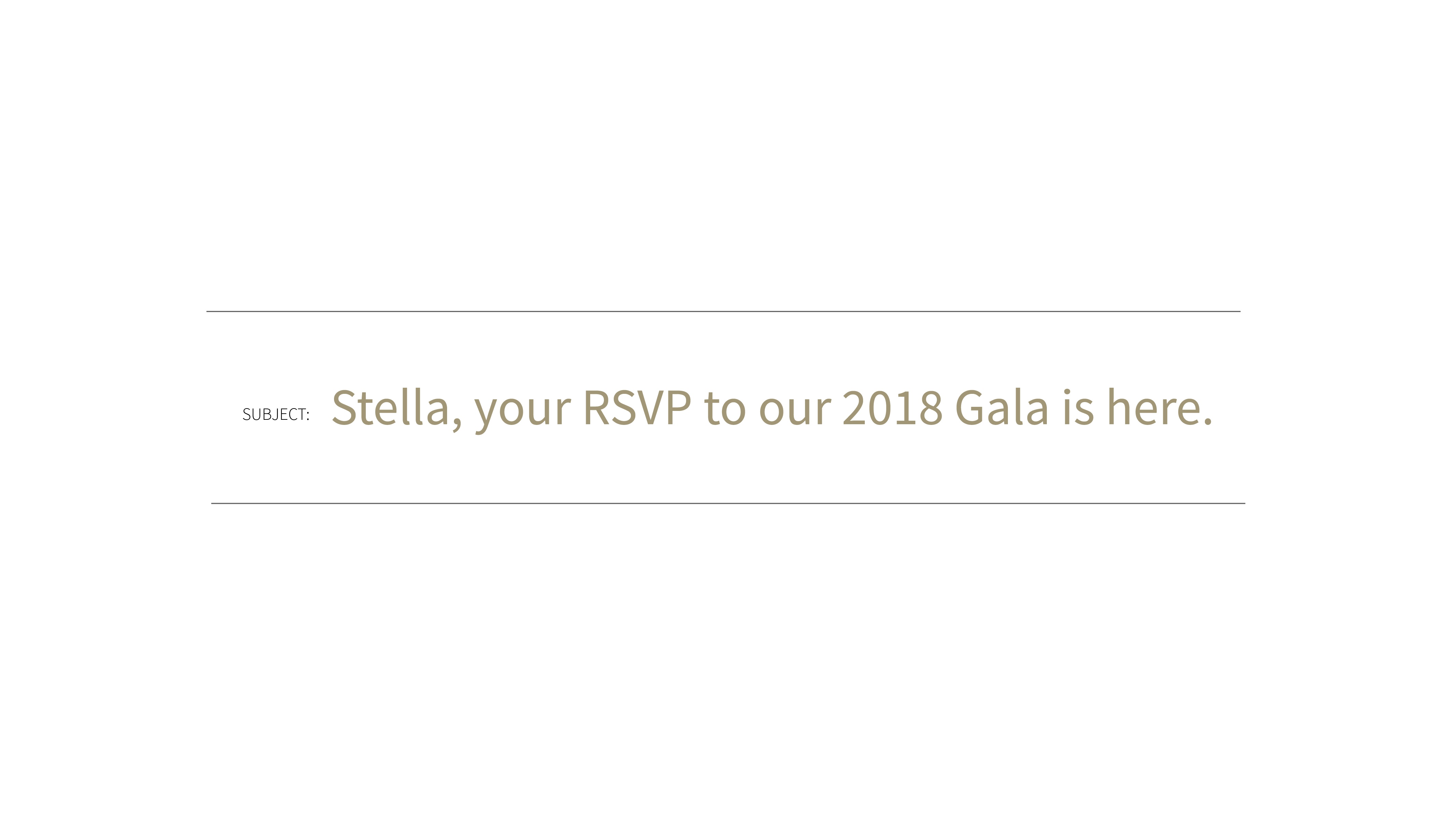 Do: Indicate what kind of event the invitation is for. We found that mentioning the kind of event (e.g. dinner, gala, launch party) often led to significantly increased opening rates.
